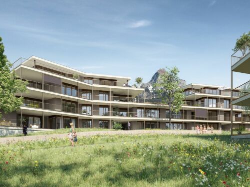 Die elegante Holzfassade, grosszügige Fensterflächen und moderne Architektur fügen sich harmonisch in die grüne Umgebung ein. Hochwertige Materialien, grosszügige Räume und modernste Gebäudetechnik garantieren höchsten Wohnkomfort und Nachhaltigkeit.