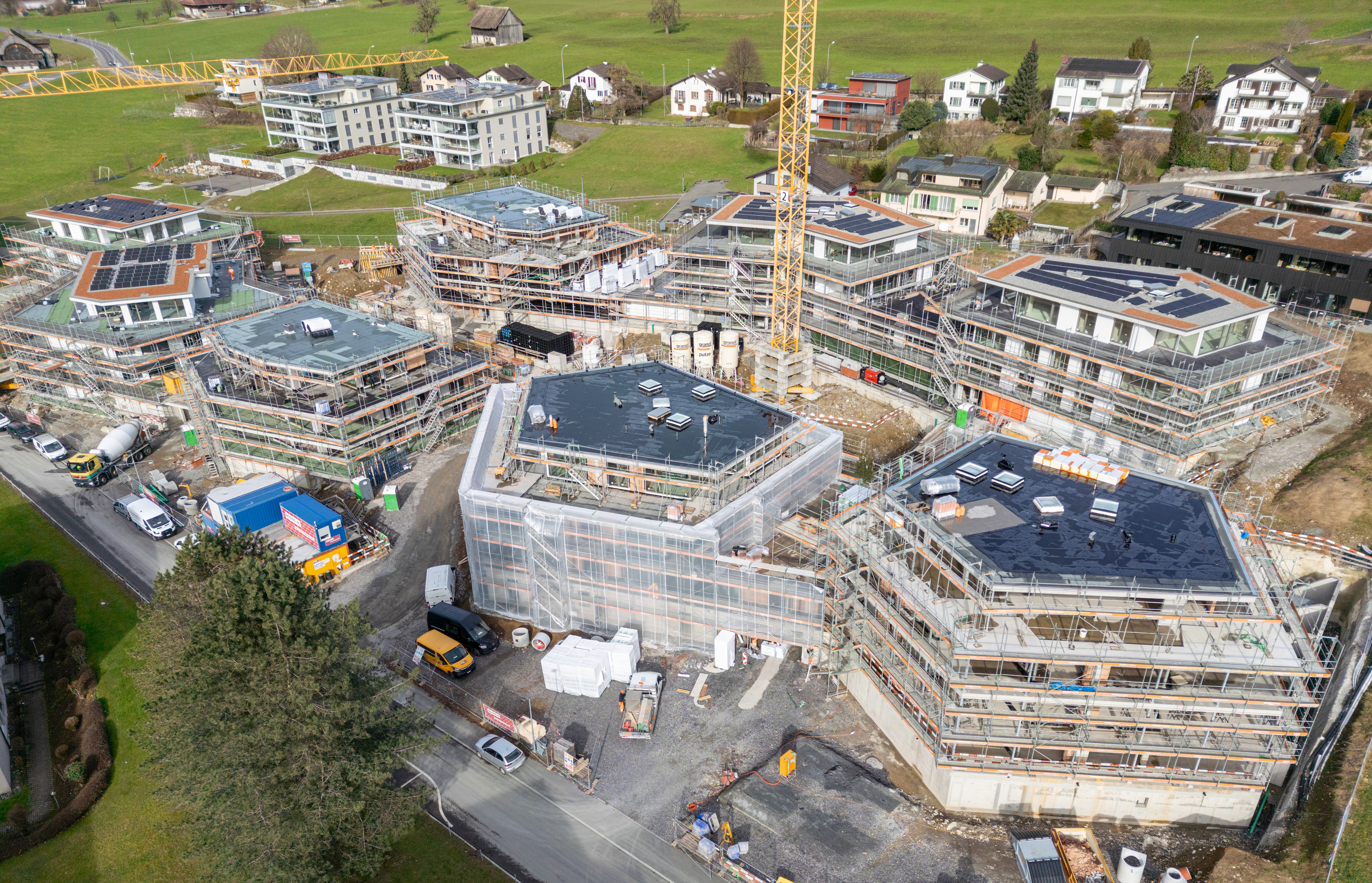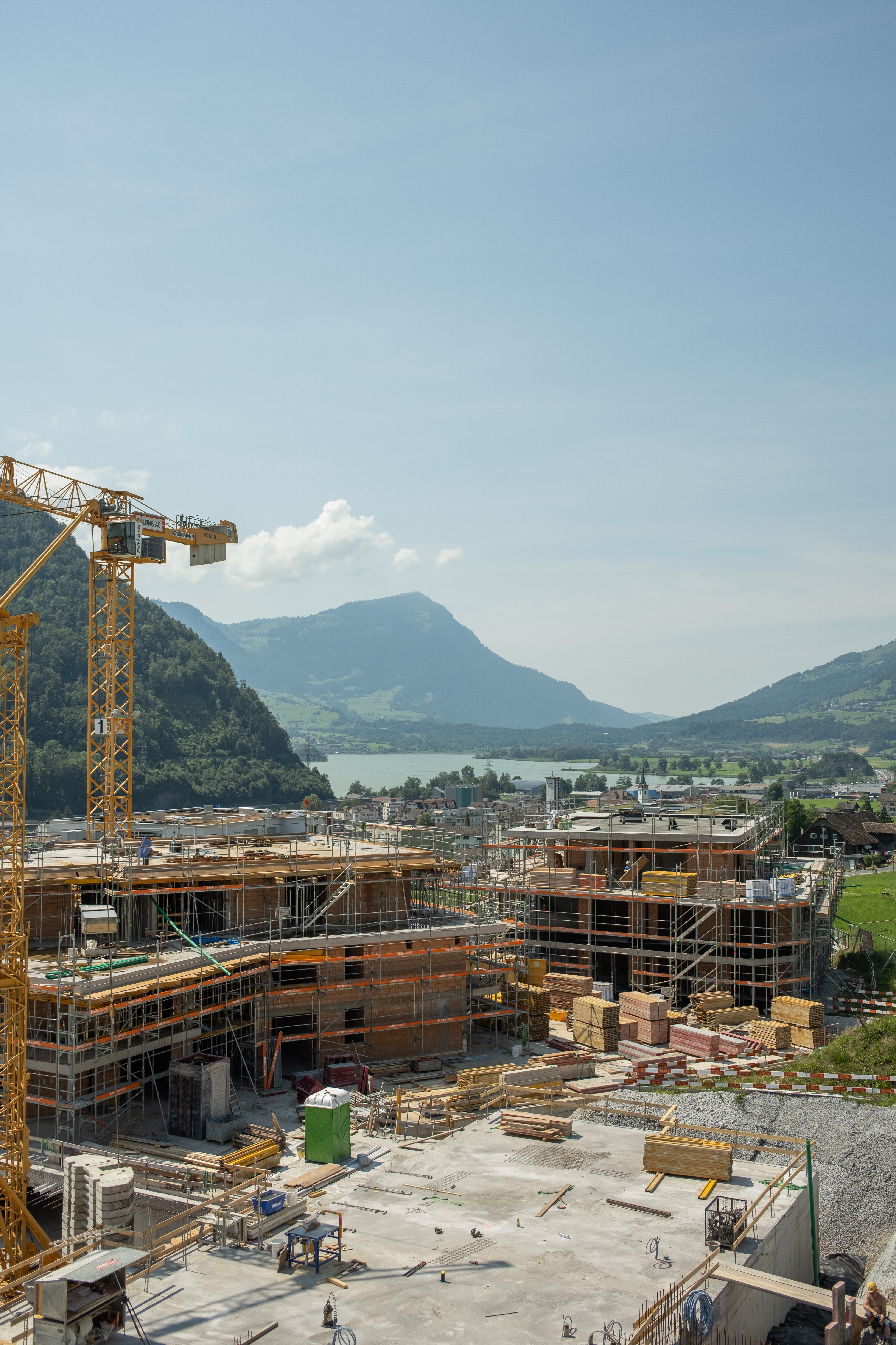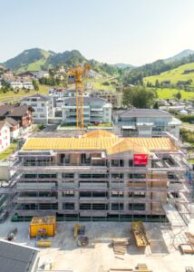 Auf der Baustelle im Grossfeld Seewen geht es voran, schon jetzt lässt sich erahnen, wie modern und stilvoll die zukünftigen Eigentumswohnungen sein werden.