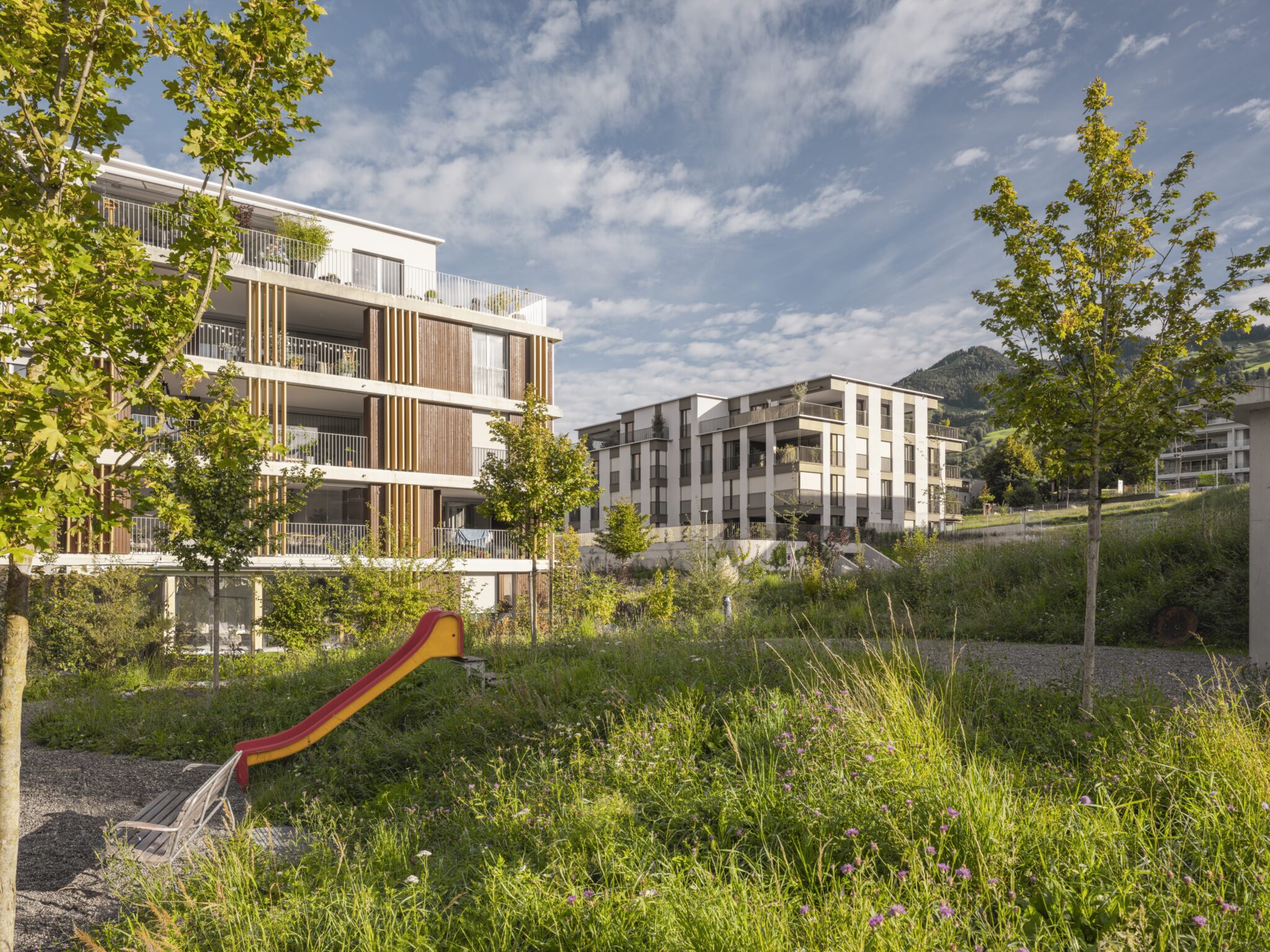 Die elegante Holzfassade, grosszügige Fensterflächen und moderne Architektur fügen sich harmonisch in die grüne Umgebung ein. Hochwertige Materialien, grosszügige Räume und modernste Gebäudetechnik garantieren höchsten Wohnkomfort und Nachhaltigkeit.