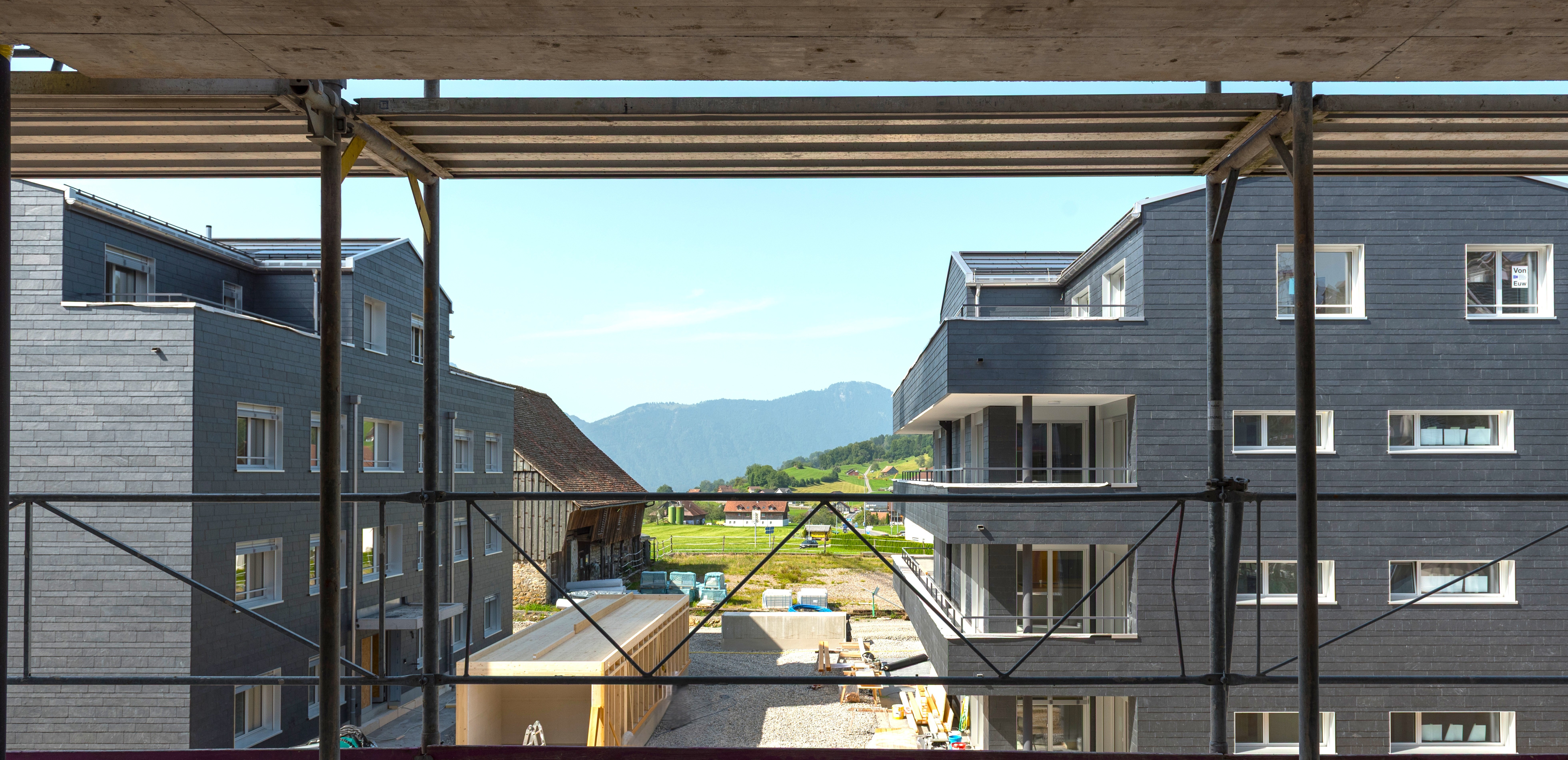 Die Aufrichtung unseres Mehrfamilienhauses ist erfolgreich abgeschlossen. Damit ist ein wichtiger Meilenstein erreicht.